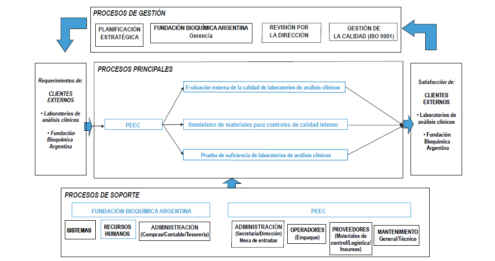 Resumen: Las determinaciones de los laboratorios clínicos tienen un papel muy importante en la evaluación, diagnóstico, tratamiento y evolución del estado de salud de las personas. La confiabilidad de sus resultados se logra a través del aseguramiento de la calidad y mejora continua. El Programa de Evaluación Externa de la Calidad “Prof. Dr. Daniel Mazziotta” acompaña a los laboratorios de análisis clínicos desde hace 31 años brindando distintas herramientas para garantizar la calidad analítica. Ofrece los servicios de evaluación externa de la calidad, suministro de material para control de calidad interno para determinaciones en Química Clínica y soluciones para control de instrumental y pruebas de suficiencia. Desde la creación del programa se establecieron objetivos estratégicos a desarrollarse en tres etapas: establecimiento, consolidación y apoyo a la gestión de la calidad. Se genera ahora una nueva etapa, cuyo objetivo final es la acreditación. Como primer paso de este ciclo, se implementó un sistema de gestión de la calidad (SGC) de acuerdo a los requisitos establecidos en la norma argentina IRAM-ISO 9001:2015. En agosto de 2019, el Instituto Argentino de Normalización y Certificación (IRAM), representante en Argentina de la International Organization for Standarization (ISO), certificó que el SGC del programa cumple lo establecido en dicha norma. Su aplicación tiene como objetivo asegurar que los servicios ofrecidos satisfagan las necesidades de los laboratorios clínicos cumpliendo los requisitos legales requeridos y asegurando la mejora continua. El objetivo de este trabajo fue describir las acciones realizadas en la implementación del SGC y la posterior certificación de IRAM-ISO 9001:2015, por el IRAM.