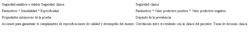 Tabla I. Diferencias entre seguridad analítica y clínica.