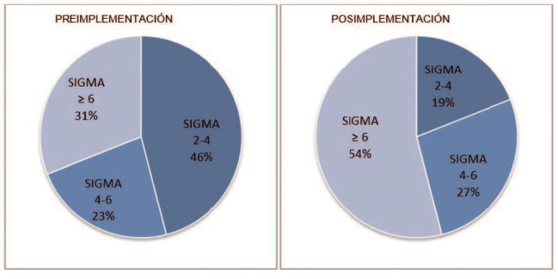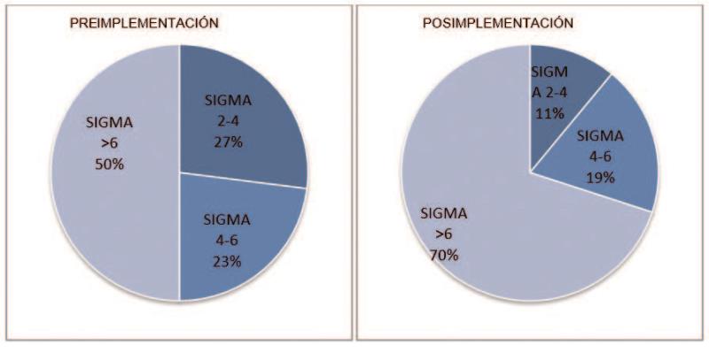 Tabla V. Valores de sigma en situación basal y luego de la implementación.