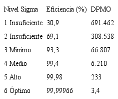 Tabla I. Modelo Seis Sigma