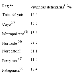 Tabla II. Viviendas deficitarias según región (año 2010*).