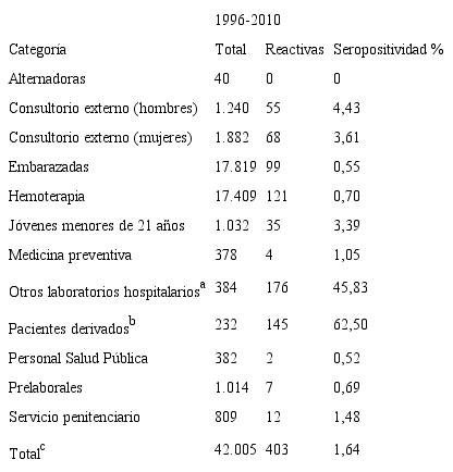 c Excluidos los sueros derivados por otros laboratorios hospitalarios para confirmación y los controles de pacientes derivados.