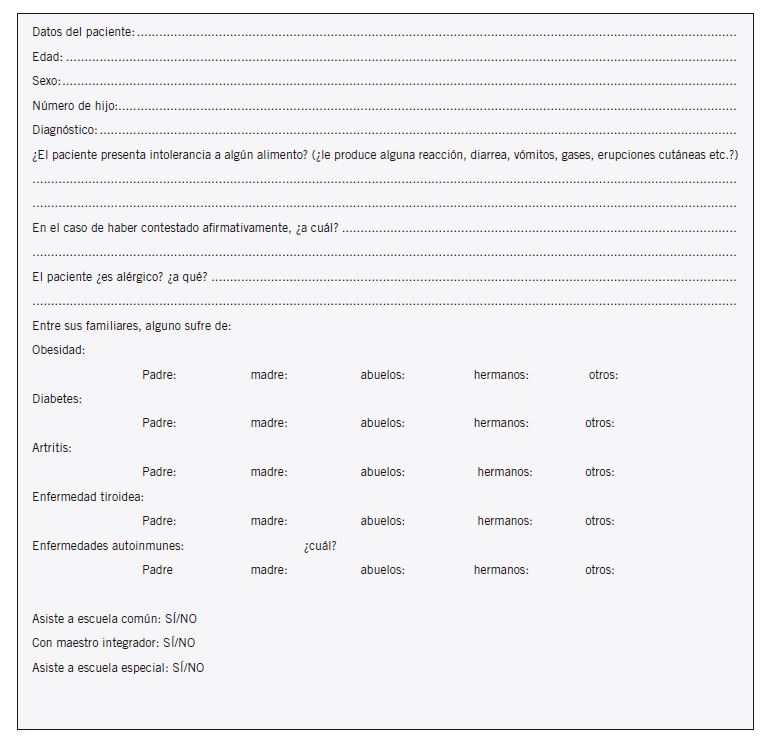 c. relevar entre los familiares directos la presencia de diabetes, obesidad, enfermedades autoinmunes, intolerancias;