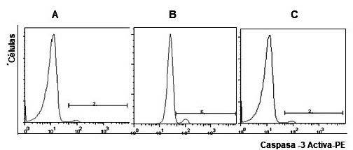 Este ensayo fue realizado en muestras de 1x106 células con un equipo comercial (PE Active Caspase-3 Apoptosis Kit, BD Pharmingen™) siguiendo las recomendaciones del fabricante. Las muestras fueron analizadas en un citómetro de flujo FACScan Canto II Becton Dickinson, con la adquisición de 50.000 eventos. El análisis de los datos se realizó utilizando el software FlowJo 5.7.2 (Tree Star, Inc).