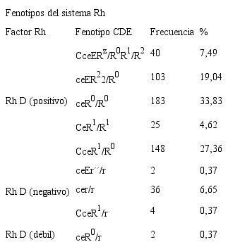 Tabla IV. Distribución de los fenotipos del sistema Rh