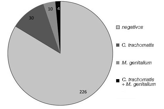 Figura 2. Número de casos positivos para C. trachomatis y M. genitalium en las 270 muestras estudiadas.