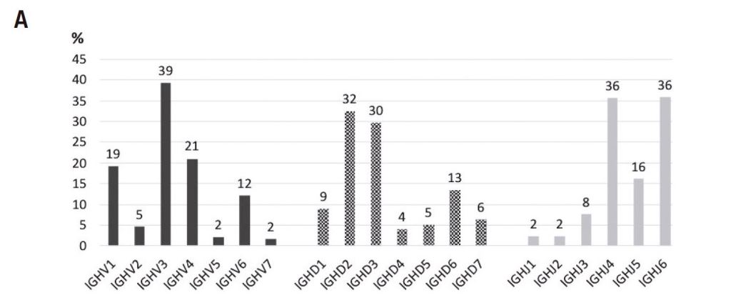 Figura 2. Incidencia de familias de segmentos génicos V-(D)-J de inmunoglobulinas.