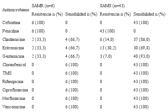 Tabla II. Perfil de resistencia a los antibióticos de cepas SAMR y SAMS