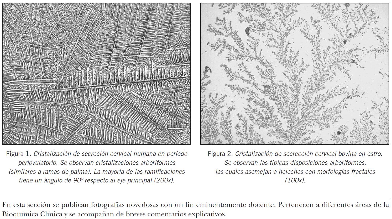 El estudio de las características de cristalización y de la ultraestructura de las secreciones cervicales humanas y bovinas brinda una información morfológica muy valiosa para comprender el proceso reproductivo en condiciones fisiológicas y fisiopatológicas (1) (2).