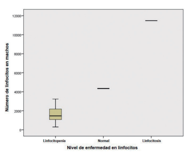 La Tabla III describe el recuento de linfocitos en ratones macho utilizados durante el estudio, donde se observó la presentación de linfocitopenia y linfocitosis como alteraciones generadas por la exposición a perclorato de amonio. En la Figura 3 el ANOVA permite evidenciar que hay diferencia de medias en el recuento celular (número de linfocitos) debido a los tratamientos, y que estos valores son significativos.