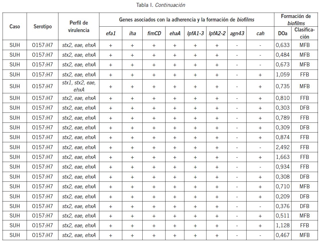 Keywords: Shigatoxigenic Escherichia coli, Hemolytic uremic syndrome, Biofilms, Adherence factors, Shigatoxigenic Escherichia coli.