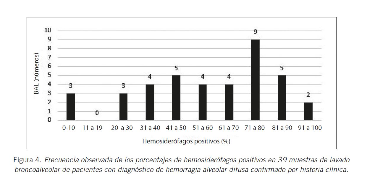 Se determinó el porcentaje de hemosiderófagos para cada muestra de BAL y, por último, se corroboró el diagnóstico definitivo con la historia clínica del paciente.