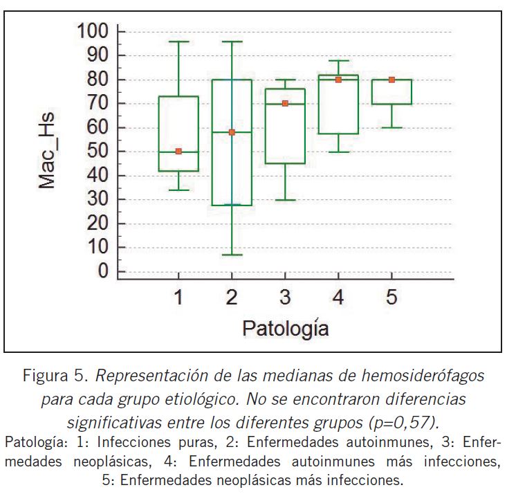 Se obtuvo un valor de mediana de hemosiderófagos para cada grupo etiológico: