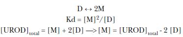 D: dímero, M: monómero, Kd: constante de disociación del equilibrio, [UROD]total: concentración total de UROD en solución.