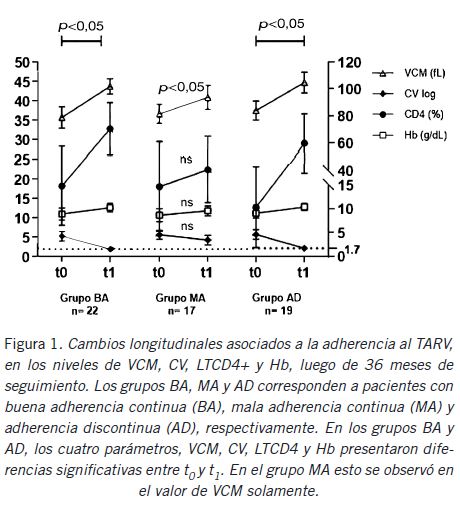 En conclusión, el monitoreo de los cambios observados en diversos parámetros hematológicos con la incorporación del TARV, brinda una importante información adicional, ya que la mejoría de los mismos podría ser un indicador útil de buena respuesta al TARV.