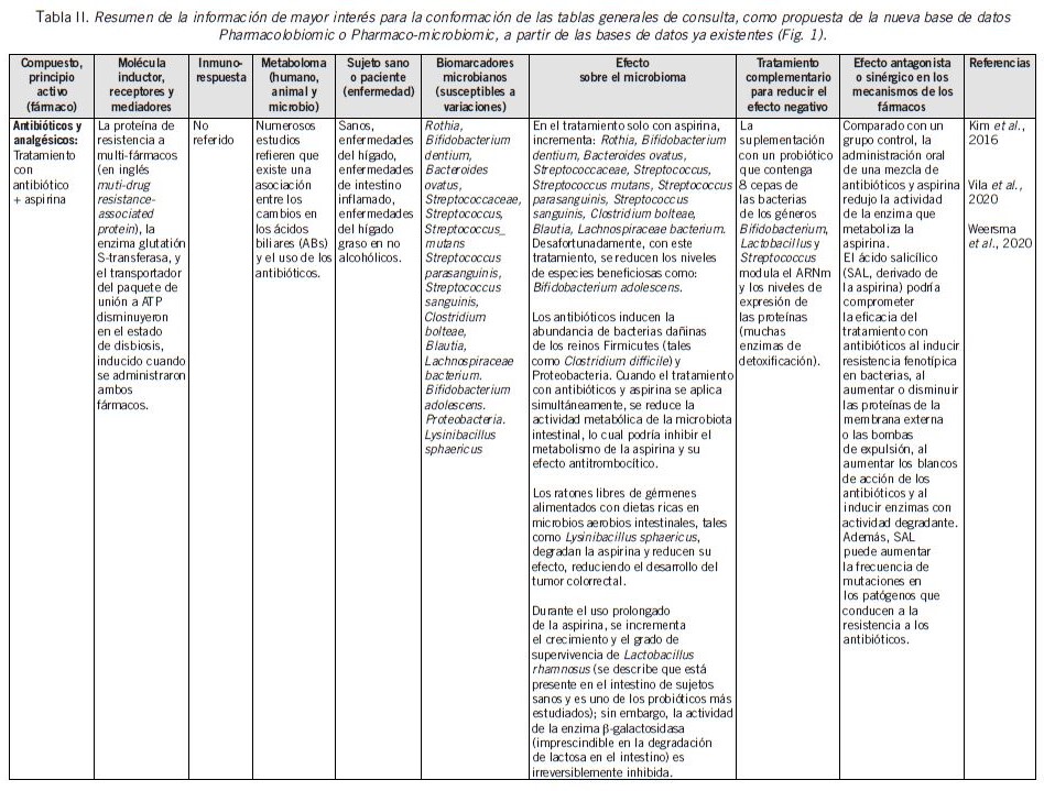 Por ello, sería fundamental proponer la integración de toda esta información curada en una plataforma única, como proponen Aziz et al. (39), que denominaron “Base de datos de pruebas farmacomicrobiómicas”. Según los argumentos de estos autores, se espera que una base de datos de este tipo sea un paso clave en el diseño de nuevos fármacos y de terapias de precisión.