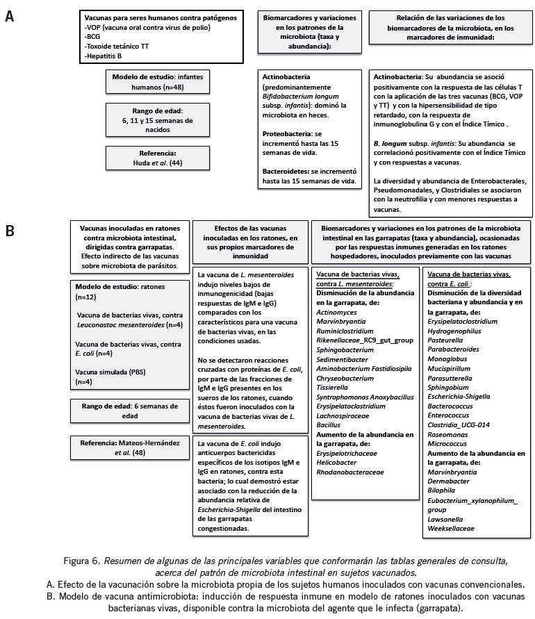 Las recomendaciones de los ensayos clínicos fueron documentadas en 145 referencias (finalmente, 48 seleccionadas por su relevancia); una referencia fue encontrada en las bases de BioProject, 18 referencias pertenecían a metanálisis y 17 a vacunas, las cuales avalaron la existencia de diferencias en cuanto a taxones y abundancia de microbios presentes en sujetos tratados con fármacos y vacunas (vacunas convencionales y de nueva generación) (Fig. 2).