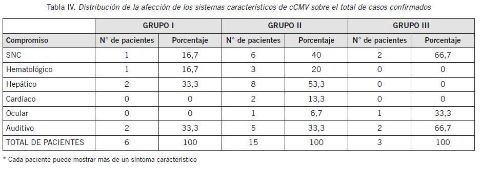En cuanto a la distribución de la afectación de los sistemas en los casos confirmados de cCMV no se observaron diferencias con respecto a los casos de sospecha (Tabla IV).