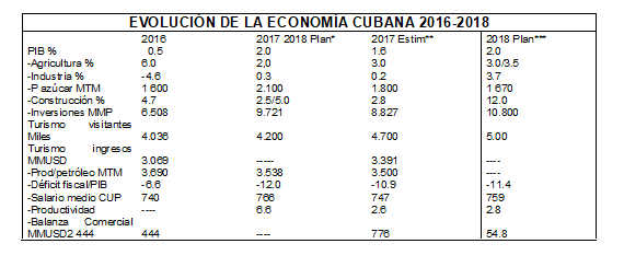 ***Ricardo Cabrisas “Con el esfuerzo de todos somos capaces de asegurar los principales objetivos estratégicos y de desarrollo del país” Granma, diciembre 22 del 2017 y estimados del Economist Intelligence Unit, “Country Report Cuba” February 11,2018.