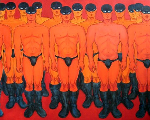 Rocío García. Pelotón. Serie: El domador y otros cuentos. Óleo sobre tela, 150 x 180 cm., 2003.