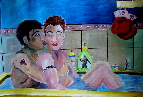 Alexis Álvarez. El bóxer y el cisne. Acrílico sobre cartulina. 115 x 87 cm.