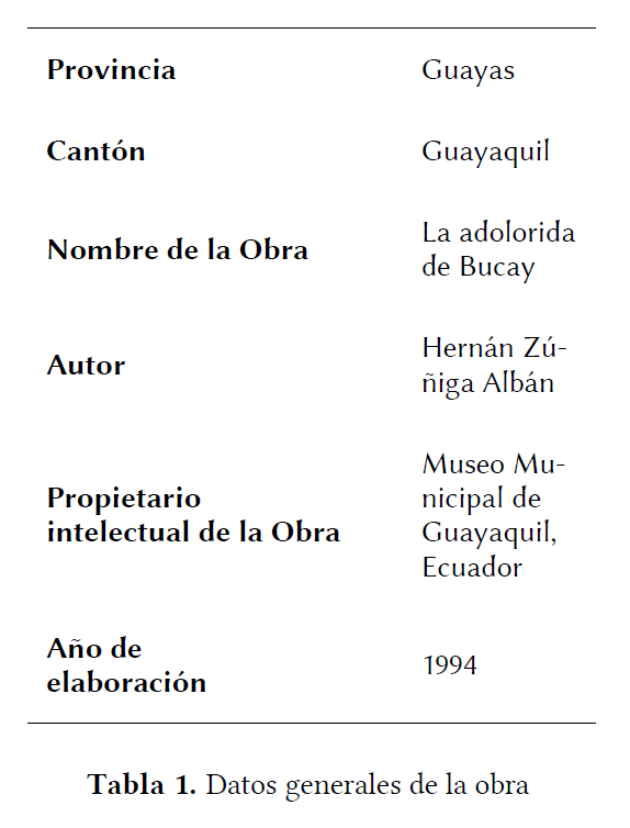 En la Figura 1 puede apreciarse la Obra La adolorida de Bucay (ver tabla 1) y en la Figura 2 la imagen de La Dolorosa, ambas motivos de análisis.