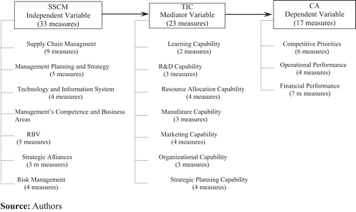 To operationalize the empirical mediation model, according to Baron and Kenny (1986) and Lakatos and Marconi (1991), the mediator variable (TIC) is that which, in a sequence, is placed between the independent variable (SSCM) and the dependent variable (CA). Its function is to amplify, reduce or cancel the influence of SSCM on CA, and it is, therefore, considered a consequence of the independent variable (SSCM) and determinant of the dependent variable (CA).