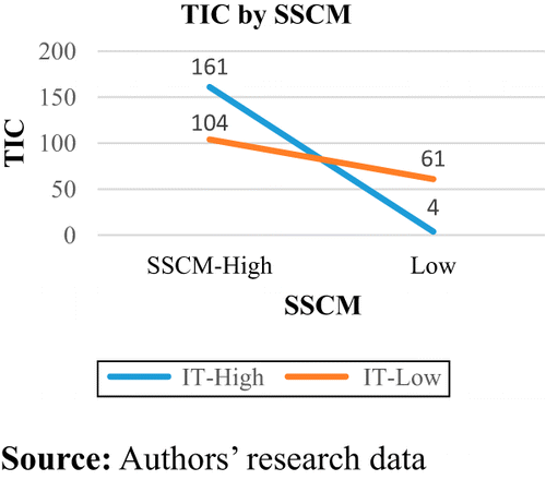In the direct relation of TIC by SSCM, there is also a direct influence by the degree of SSCM on TIC. That is, as SSCM decreases, so does the importance of TIC, which demonstrates that variations (high or low) in TIC also occur (high or low) in SSCM: