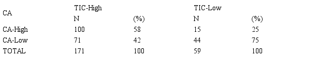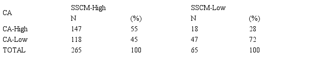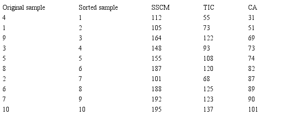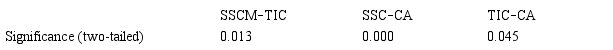 Table II shows the result of the ordering of the ranks of the SSCM, TIC and CA constructs in ascending order of the CA construct.
