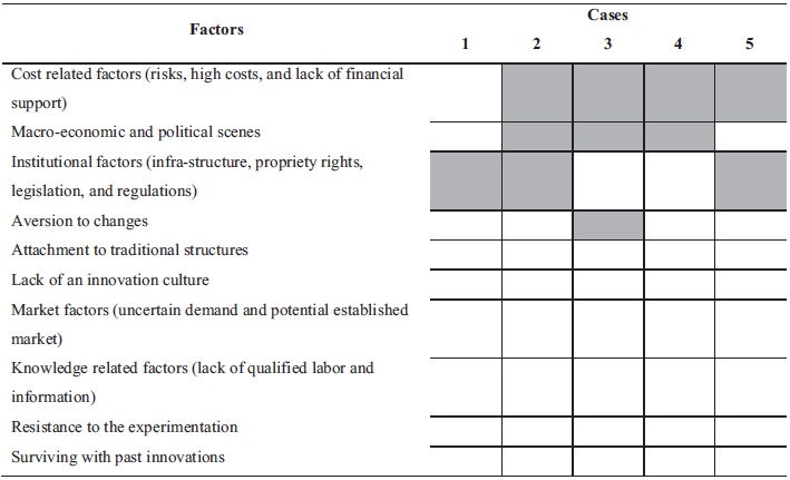factors related to knowledge, such as low level of innovative potential, lack of qualified labor, limited information on technologies and markets and aversion to organizational changes;
