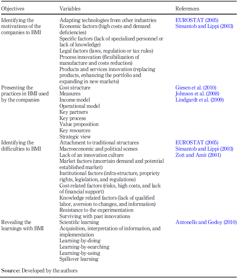 Considering the need for more studies related to the field and the absence of studies that investigated Brazilian companies, we argue that: How does BMI happen in Brazilian companies? A delimitation was carried out in the study of manufacturing companies, from medium to large-sized, located in the Rio Grande do Sul state. Companies were selected by accessibility and convenience. The main objective of this article is to analyze how does BMI happens in Brazilian manufacturing companies, from medium to large-sized, located in the Rio Grande do Sul state. The specific objectives include the investigation of BMI practices adopted by the companies, the difficulties faced to innovate and the organizational learning acquired with this innovation process.