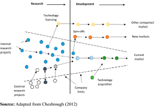 The projects can be brought to market through internal and external paths, and new technologies can be integrated into the innovation process at any step of the process, both in the research process and in the development step. The creation of new business (spin-offs) and the licensing of technology are just a few examples of how the projects of the organization can be put on the market, in addition to the channels of sales of the company (Chesbrough, 2011).