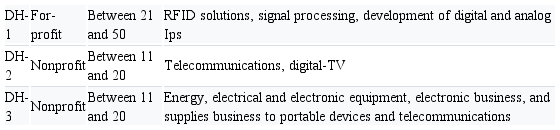 DH-3 quoted projects with universities and research centers to develop innovations. DH-1 said to maintain strong ties with Federal University laboratory and research group, its point of origin, by scientific-technological cooperation and training of human resources. In addition, the company maintains strong interaction with electronic engineering university course, as most of the company employees studied at the university.