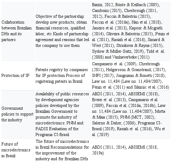 For future research, it is suggested to compare the strategies adopted by DHs connected to Programa CI-Brazil with the ones adopted by DHs of the private sector; and to evaluate the results of support public policies implemented by the government in the development of the semiconductor industry.
