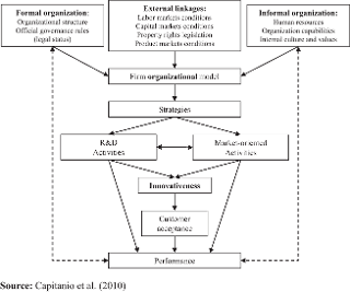 The performance of innovation in this sector is related to internal and external factors – in addition to consumer acceptance – that define the organizational model of the company and subsequently development strategies (Capitanio et al., 2010). The model by Capitanio et al. (2010) highlights the aspects that affect innovation and performance (Figure 1).