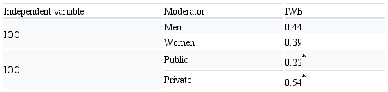 Because private organizations confront strong international competition and fast technological transformations, adjusting to the challenging business settings has become decisive for business success (Eisenhardt & Martin, 2000). According to Perry (2000), further empirical studies are required to embrace the larger work context for understanding organizational behavior in public-private sector organizations. Hence, in this study, we have included work-culture as a moderator between IOC and IWB by taking the public-private sector as a proxy for this work culture: