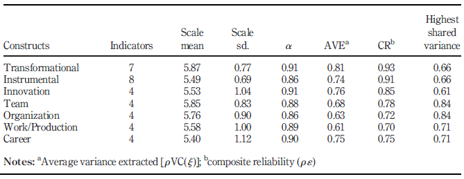 The highly positive correlation between instrumental leadership and transformational leadership is in line with the theoretical notion that to achieve good performance leadership, a transformational view is necessary, and an instrumental aspect is also necessary to formulate a strategy to achieve such purpose (Rowold, 2014). In addition, a further aspect must be considered as the reason for this high correlation. Rowold’s (2014) study, recently analyzed by Bormann and Rowold (2018):