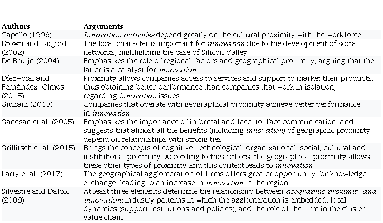 During the analyses, we found some evidences regarding geographical proximity and interaction with other companies and external agents, which emphasizes their importance for the innovation process in industrial clusters (Tables 3 and 4).