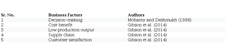 The above discussed factors are well researched in large manufacturing companies (Arnold & Voigt, 2019; Niaki, Torabi, & Nonino, 2019). However, with regard to small- and medium-sized industries, research requires directions. Hence, this study framework has considered these three factors, i.e. benefits of additive manufacturing, challenges of implementation of additive manufacturing and influence of business environment in the adoption of additive manufacturing in small- and medium-sized industries. In the following sections, the reasons for including these three factors are discussed.