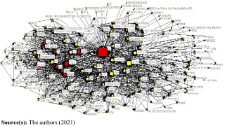 As for data analysis, the content analysis was the adopted technique for qualitative data (interviews, observations and documents). We carried out content analysis in the following stages (Bardin, 2011): (1) pre-analysis (organization of ideas, data collection and operationalization), (2) exploration of materials (data coding) and (3) result/inference (synthesization, selection and interpretation). As for the SNA, the files' information was entered into Excel Software to build a valued sociometric matrix. The sociometric matrix was adopted because it allows the measurement of the strength of ties and the center-periphery analysis (Hanneman & Riddle, 2005), providing greater accuracy in interpreting the results. A value of 1 (one) was assigned in the perception of interfirm ties, and a value of 0 (zero) in the absence of ties was assigned to elaborate the valued matrix. In cases of repetition of the relationship between two organizations, we summed it in the sociometric matrix. Such procedure made it possible to detect the number of executed projects established by the other organizations, along with the EF. Finally, the estimated network's sociometric and egocentric data were extracted from the Ucinet Software, version 6.647.