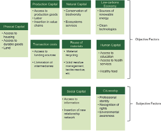 Torres, Barki & Comini (2015) highlight that combating poverty relates to an increase in the assets of a determined population: physical capital, including land and material goods; human capital, including education, health and work power; and social capital, which relates to the extension and nature of social relations. When the notion of capital is expanded, comprising several types of assets that make up the heritage of a population, the scope and complexity of sustainable development start to demand an essential prerequisite: society's access to full participation and to means of communication and information exchange (Ostrom, 1999; Bak, 2018; Patiño & Faria, 2019). Thus, it is possible to affirm that the generation of socio-environmental value is closely related to combating the causes of social exclusion and inadequate exploitation of the environment.