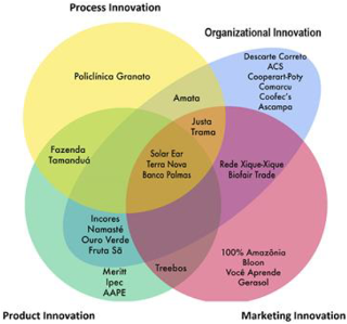 In the cases analyzed, only three social ventures (Terra Nova, Banco Palmas and Solar Ear) can be considered strongly innovative organizations because they make significant improvements in the four categories (product, process, market and organizational) of innovation.