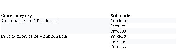 We used summative content analysis to study the business profile of 22 Latin American member companies BCtA and analyzed the data with NVivo 12. We started by determining the most frequently used words and identifying trends in the text. Then an individual in-depth scanning of every description took place, providing a greater understanding of the underlying meanings in the content. We created codes to identify the modification or introduction of new products/services/processes in each of the analyzed companies, as summarized in Table 2.