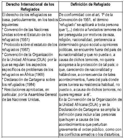 2. El tema de los desplazados y refugiados en el derecho internacional