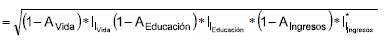 (1)En el caso de la educación, a partir de la ecuación 1 se aplica a cada uno de los dos subcomponentes (años de educación promedio y años esperados de instrucción); luego se calcula un subíndice compuesto utilizando la ecuación 1, donde se vuelve a aplicar la media geométrica de los índices usando el valor mínimo (0) y la media geométrica más alta de los índices resultantes del período considerado como valor máximo.