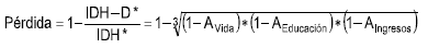 A su vez, la pérdida porcentual del IDH* debido a las desigualdades en cada dimensión se calcula así: