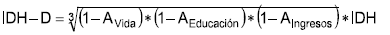 Posteriormente, obtenemos el IDH ajustado por la desigualdad (IDH-D) calculando la media geométrica de los índices de las tres dimensiones ajustados por la desigualdad. Se calcula el IDH-D que incluye el índice de ingresos sin transformación logarítmica (IDH-D*)