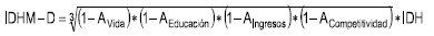 Utilizando el mismo procedimiento para obtener el índice de desarrollo humano modificado ajustado por desigualdad (IDHM-D),al incluir en el IDHM-D, la variable competitividad, entonces el IDHM-D, se puede calcular como: