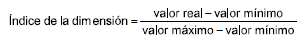 Para el caso de los ingresos, se aplica el logaritmo natural de los valores mínimos y máximos reales. El IDH se obtiene de la media geométrica de los índices de las tres dimensiones: