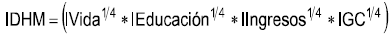 (2)De acuerdo con la metodología propuesta por Salas– Bourgoin (2014)1, de la fórmula (2) se obtiene el IDHM modificado: